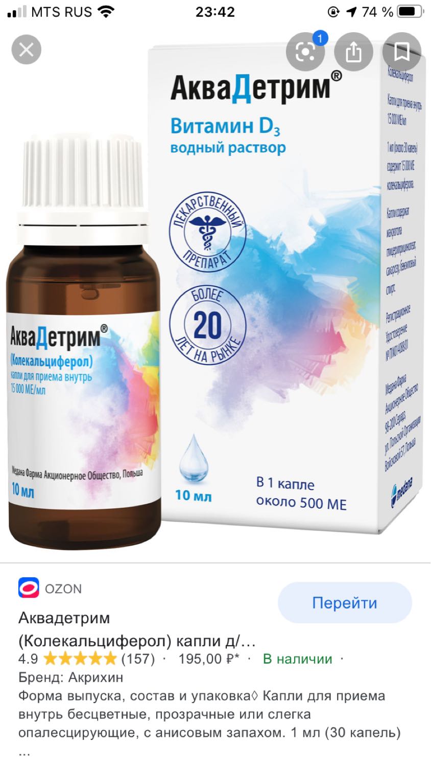 Ни в коем случае не берите аквадетрим🤭 в составе бензиловый спирт, уже не раз писала об этом, не травите деток🙏🏻 тем более у вас ещё совсем малышка
